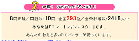 やってみました WILLCOM 03検定 – けんてーごっこ 結果。 やったーヽ(´∀`)ノ 合格♪ 10問中8問正解でし...