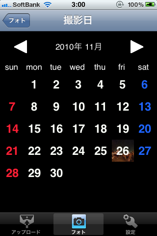 Android版では、既にギャラリーに保存されていた写真もカレンダーの日別に自動的に振り分けることができて、アップロードの際の写真複数選択も可能。